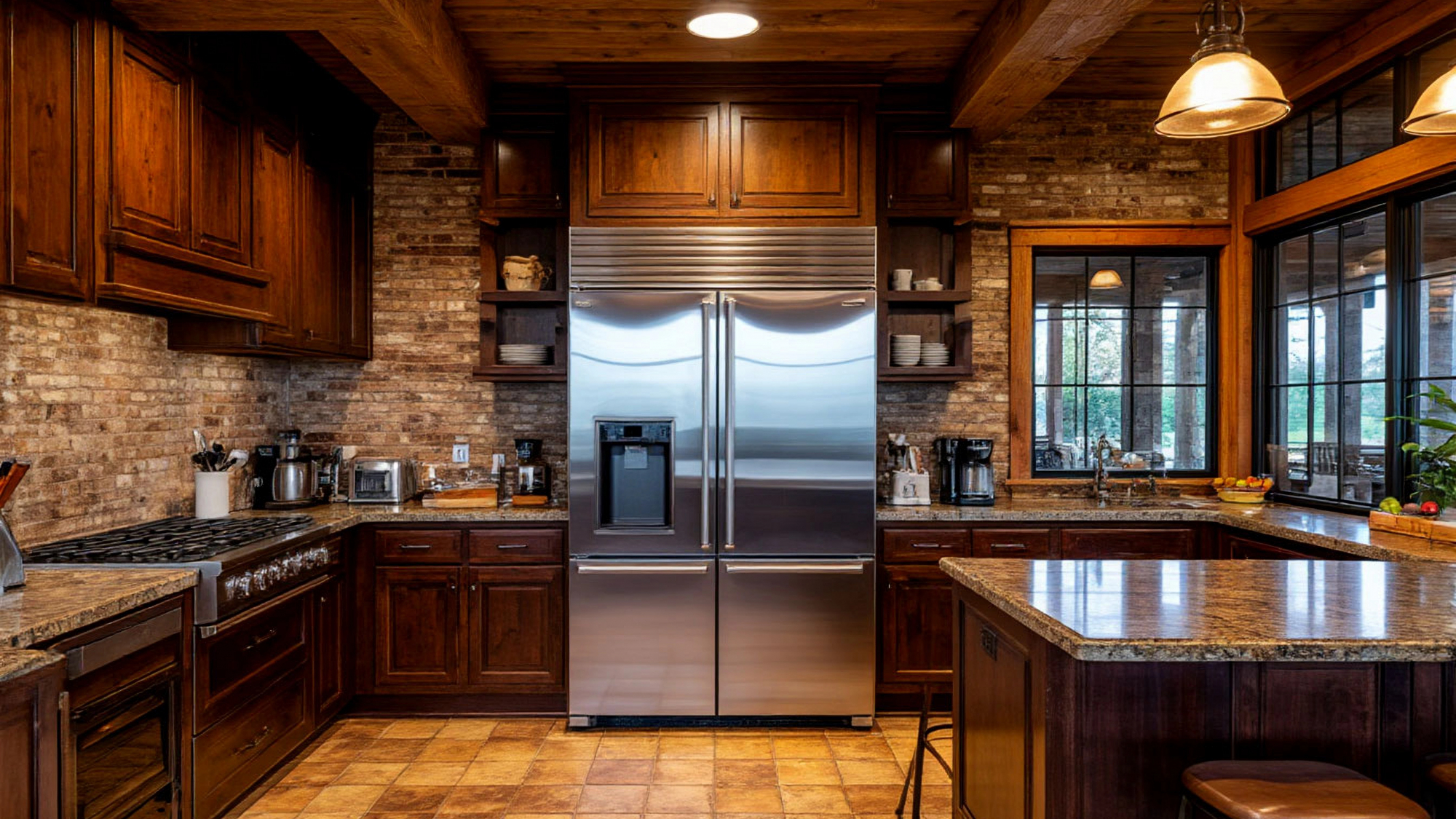 Встроенный холодильник является не только функциональным элементом, но и визуально органичной частью интерьера. Он помогает поддерживать чистоту линий и минимализм пространства, а его вместительность обеспечивает удобство хранения продуктов, что особенно важно для кухни, выполненной в стиле ресторана.