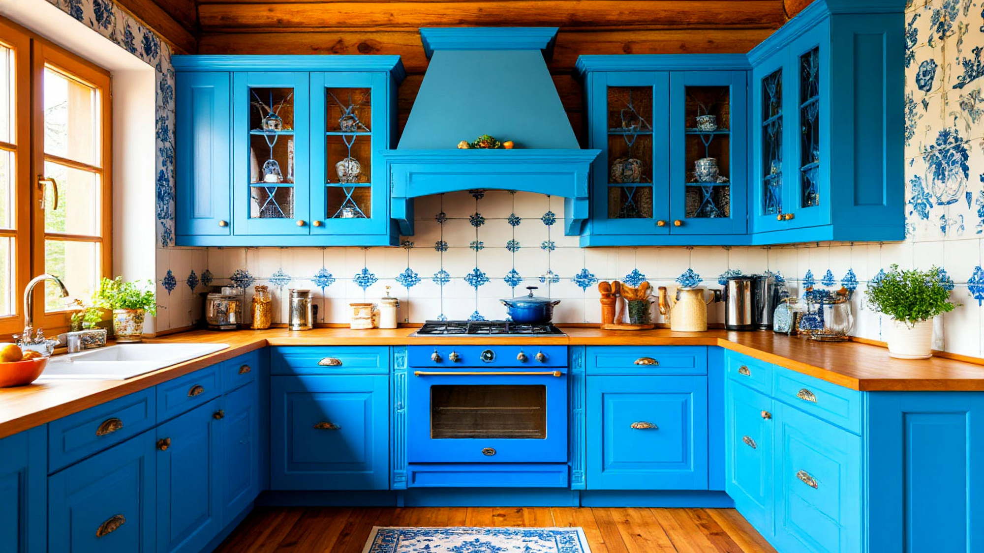 Отдельного внимания заслуживает сочетание голубого цвета фасадов с элементами натурального дерева. Этот приём особенно точен для современных кухонь в русском стиле: он создаёт ощущение спокойствия и визуального тепла, но при этом не уходит в чрезмерную традиционность или декоративность. Деревянные поверхности добавляют фактуру, глубину и мягкость, благодаря чему кухня "Холодок" воспринимается живой и по-домашнему уютной. Особенно выразительны боковые элементы и открытые полки, которые подчёркивают горизонтали и формируют визуальный ритм пространства. Именно такие детали создают ту атмосферу доверия и спокойствия, которую многие ищут в кухонных интерьерах.