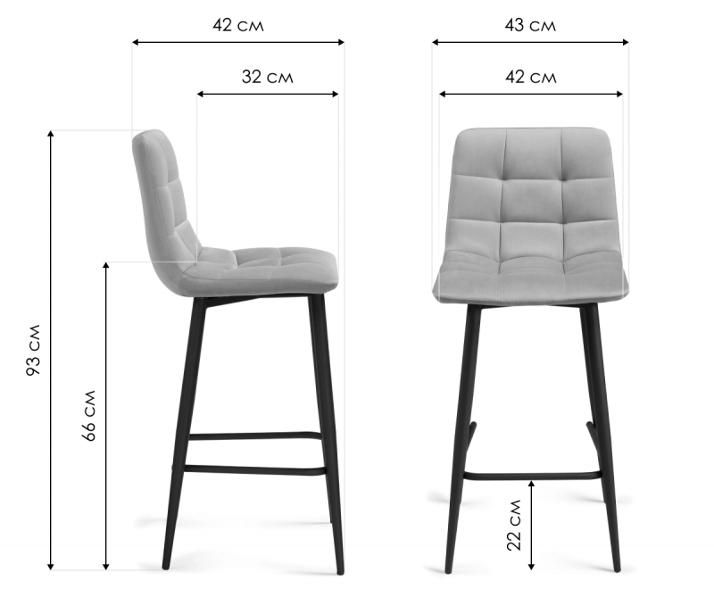 Барный стул Чилли К светло-серый / черный (43x42x93).